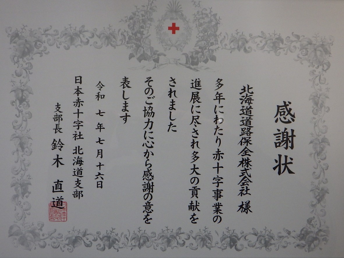 日頃の献血活動への取り組みに対して感謝状を授与頂きました。