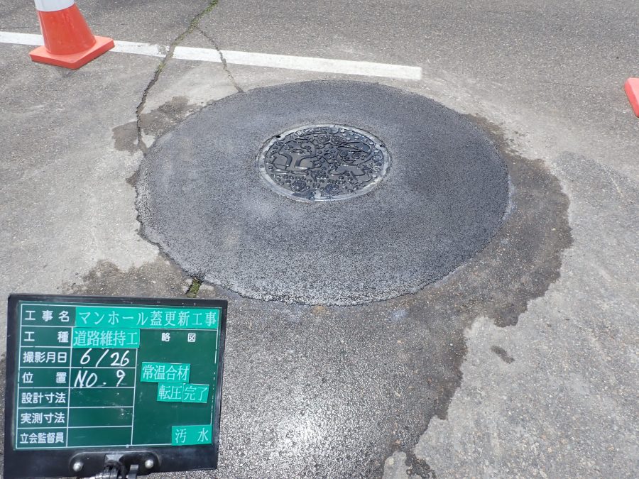 | 工事概要 | パラボラ工法 汚水マンホール蓋 10箇所 雨水マンホール蓋 4箇所 |